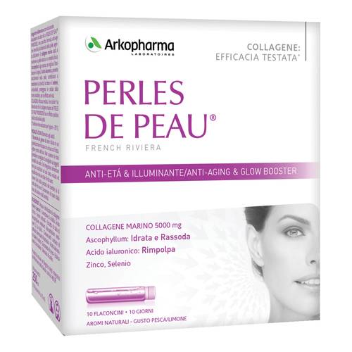 Arkopharma hat PERLES DE PEAU SINGLE DOSE entwickelt, eine spezielle Anti-Aging-Formel, die die Leuchtkraft der Haut intensiviert und von innen wirkt. Meereskollagen trägt dazu bei, die Haut elastisch und glatt zu halten; Ascophyllum, Alge, verbessert die Hydratation und Vitalität; Hyaluronsäure, die von Natur aus in der Haut vorhanden ist, trägt zur Aufrechterhaltung ihres Tonus bei; Zink und Selen, Antioxidantien, schützen die Zellen vor oxidativem Stress und sorgen für einen Anti-Aging-Effekt.
