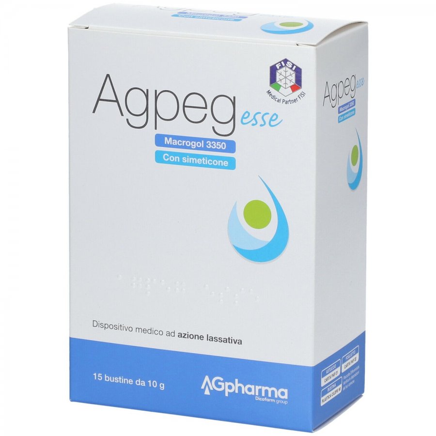 Dispositivo medico indicato per il trattamento sintomatico della stipsi. Favorisce la peristalsi, aiutando ad avere un'adeguata evacuazione intestinale, contrastando così la stitichezza e prevenendo la formazione di fecalomi. Facilita inoltre l'eliminazione dei gas intestinali riducendo la sensazione di gonfiore e distensione addominale. Agpeg esse si presenta in polvere per soluzione orale.