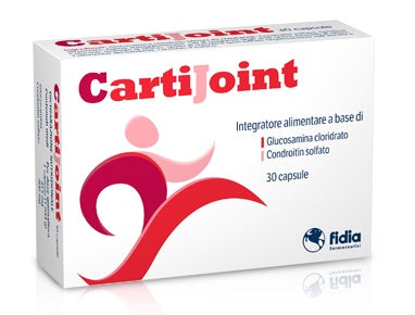 Cartijoint is a food supplement based on glucosamine hydrochloride and condroitin sulfate.Indicated in case of increased needs of these nutritional elements.It is recommended to take 1 tablet per day for 3 or 4 months.The capsules can be ingested with water, before or after meals, without chewing.Subjects with digestive tract disorders are recommended to take the capsule after meals.Do not exceed the recommended daily dose.Keep out of the reach of children under 3 years of age.Supplements should not be understood as a substitute for a varied, balanced diet and a healthy lifestyle.Contains products derived from crustaceans.Format: pack of 30 capsules