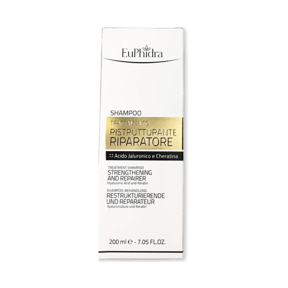El champú del reparador de renovación de Euphidra tiene una fórmula delicada con ácido hialurónico y aminoácidos de queratina que ayudan a restaurar una nueva vitalidad, vigor y luz al cabello tratado por colores y espárragos de tratamientos (planchas permanentes, químicas, uso de placas y secreras).Es específico para reparar y mejorar la estructura del cabello tratado y dañado.La fórmula es equilibrada y delicada en el cuero cabelludo.Los componentes específicos hidratan y fortalecen el cabello tratado.El cabello parecerá más fuerte, suave y brillante.Libre de parabenos y conservantes adicionales.Aplique un producto nogal en el cabello mojado, masajeando suavemente con las manos por unos momentos.Enjuague a fondo hasta que el producto esté completo.Formato: paquete de 200 ml