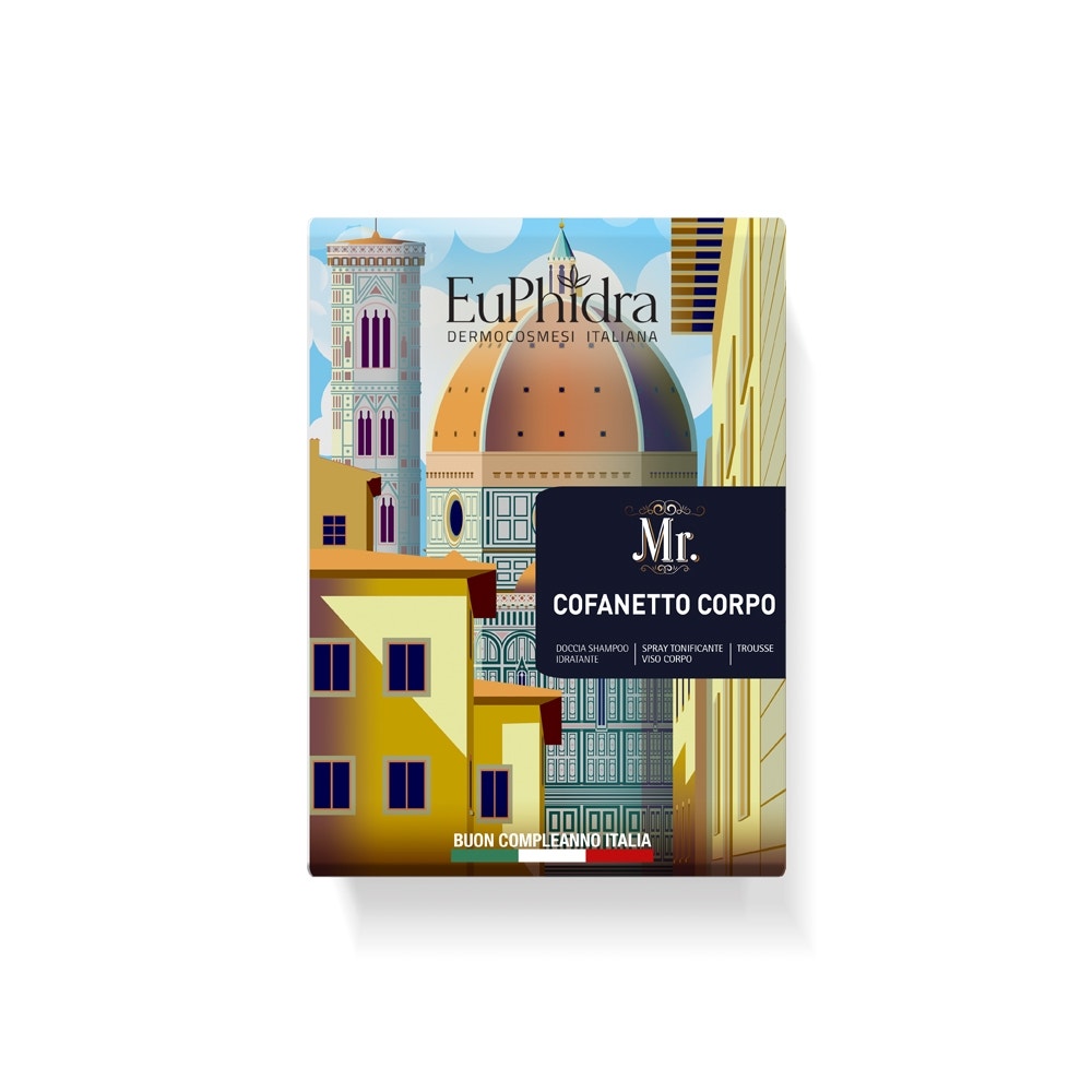 Euphidra El Sr. Body Box para él contiene champú de ducha con acción hidratante y el aerosol de tonificación para la cara y el cuerpo.