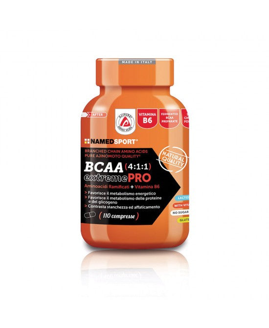 Nombrado Sport BCAA 4: 1: 1 Extreme Pro es un suplemento de aminoácidos de cadena ramificada Ajipure (1 g para cada tableta) en el estado máximo de pureza: su fórmula no tiene grasa, carbohidratos, gluten y lactosa.También contiene vitamina B6 que está involucrado en el metabolismo energético de los glucidos, lípidos y proteínas y en la síntesis de hemoglobina y glóbulos rojos.Se recomienda tomar 5 tabletas por día, antes o después de la actividad física. Formado: Paquete de 110 tabletas