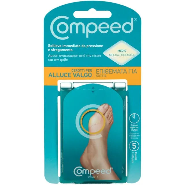 La tecnologia dell'idrocolloide Compeed è costituita da microparticelle che migliorano l'idratazione ed ammorbidiscono la pelle. Compeed agisce come una seconda pelle e aiuta a riequilibrare il normale livello di umidità per donare sollievo immediato dal dolore e dalla pressione, proteggere l'alluce valgo da ulteriore sfregamento e prevenire la comparsa di vesciche e callosità.