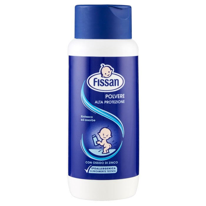 Protection élevée de Fissan Polvere Il s'agit d'une poudre enrichie d'oxyde de zinc, recommandé de protéger et de prévenir les articles et les irritations causées par le frottement avec la couche ou d'autres fermes telles que la transpiration.Grâce au talc pur présent dans la Sueformula, la poudre de protection élevée de Fissan favorise une évolution normale de la peau humide ou de la sueur d'une action absorbante et rafraîchissante délicate, la laissant douce et sèche.