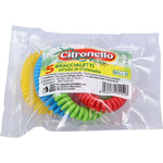 Proteggiti dalle zanzare con i Braccialetti Citronella di Sella Srl. Questa confezione include 5 braccialetti colorati, perfetti per tutta la famiglia (non raccomandati per bambini sotto i 6 anni).